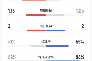 角球德比!阿森纳vs切尔西数据:射门12-9,射正5-3,均2得分机会